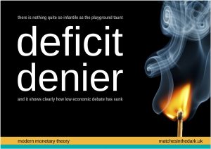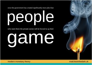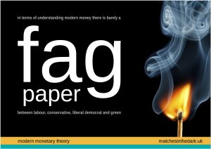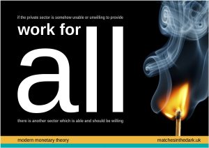 All campaigns need effective propaganda (in the original sense of the word) and a memorable poster is always a good starting point. Here is a set which I think would work well as posters or postcards (they are not really suitable for use as ‘memes’). Some are presented as aphorisms, the simple truths contained within Modern Monetary Theory, and are designed to kick-start a change in the way people think about money, economics and society.1