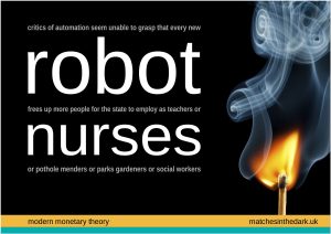 My favourites are the first eight. I see them as candidates for a series of sixteen or so cards, each focussing on one aspect of MMT, with explanatory text on the back. At postcard size there is room on the back for 400-500 words. It’s the sort of bite-sized approach that some people will take to, particularly those who don’t want to read a book (or a website, for that matter).