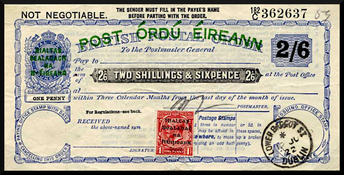 | 2. | ↵ | Image source: Postal Order Provisional Govt Ireland overprint 1922 [Public Domain], Wikimedia Commons |